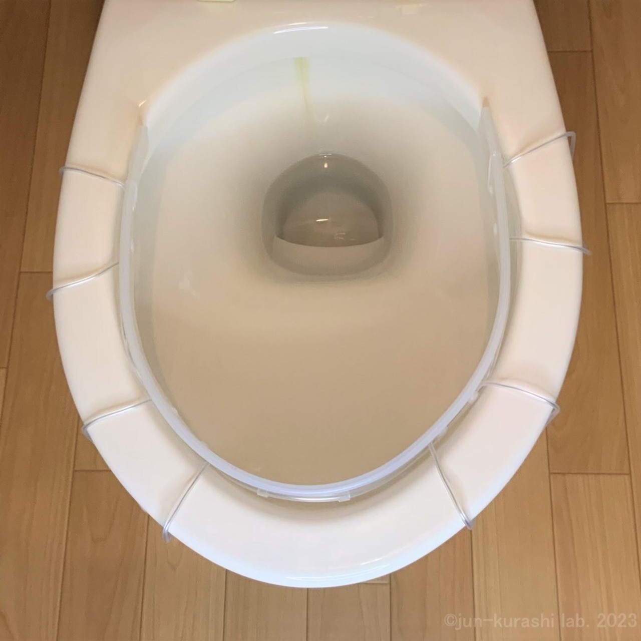 ロング(縁カバー付)『じゅん暮し研究所 おしっこガード とびちらずー』触らず洗い流せる、汚れを溜めない、便器に落ちない、便座隙間漏れ防止対策